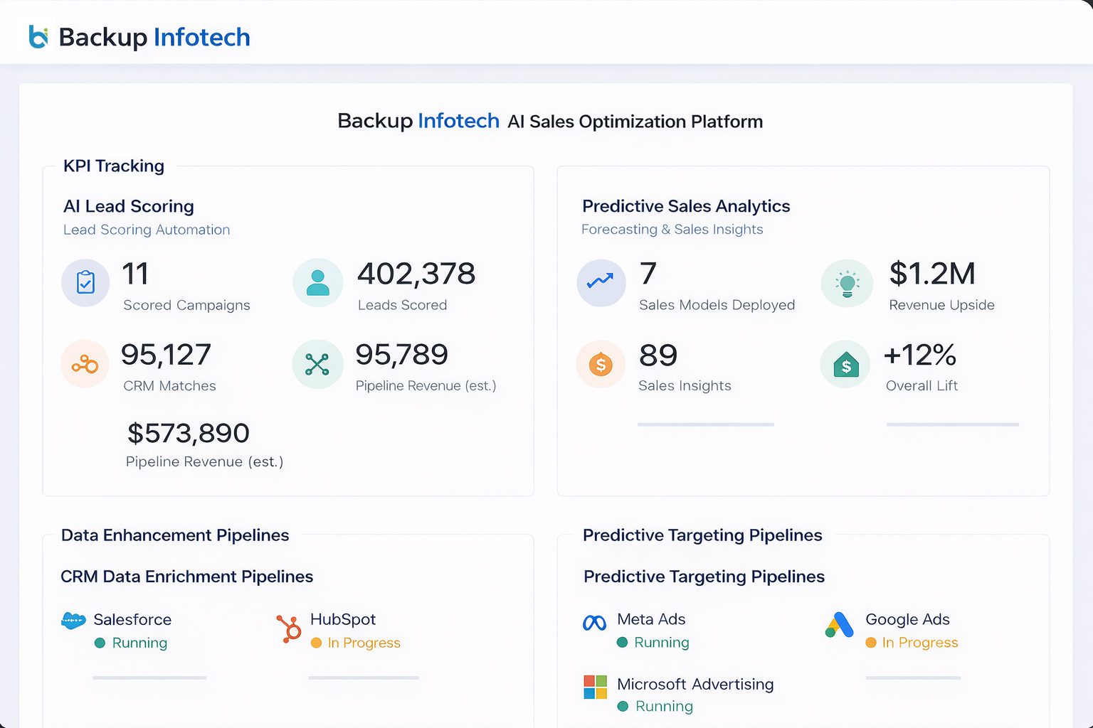 Take the guesswork out of growth with Backup Infotech’s custom IT services, executed by experts and backed by data. Streamline your efforts and scale faster. No more juggling partners when one agency can deliver it all.